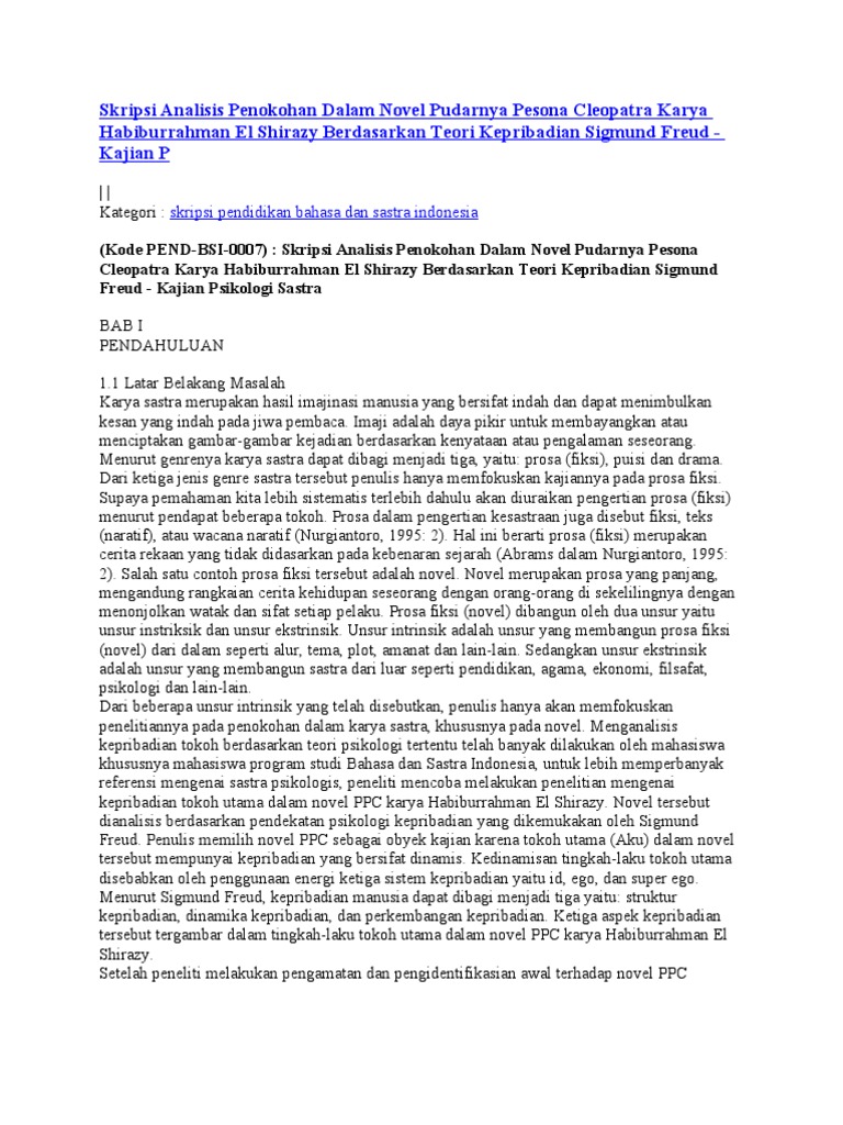 Analisis konflik psikis tokoh utama dan nilainilai pendidikan karakter dalam novel asmarani karya suparto brata kajian psikologi sastra analisis novel genesis karya ratih kumala kajian psikologi sastra dan nilai nilai pendidikan karakter analisis pelaksanaan pendidikan karakter di sma negeri 3 semarang studi pada kelompok mata pelajaran ips. Identifikasi masalah secara luas dalam novel ini mengarah pada satu objek yaitu unsur intrinsik karya sastra yang berhubungan dengan jiwa dan perilaku tokohnya. Setelah pesan anda kami terima kami akan mengkonfirmasi ketersediaan filenya.